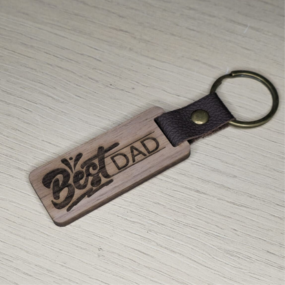 **Produktbeschreibung: Schlüsselanhänger „BEST DAD“ aus Walnussholz mit PU-Leder-Anhänger**