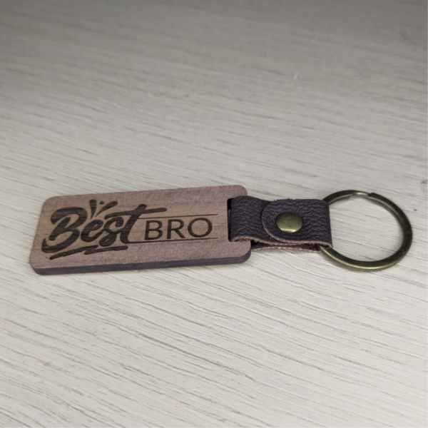 **Produktbeschreibung: Schlüsselanhänger „BEST BRO“ aus Walnussholz mit PU Leder Anhänger**